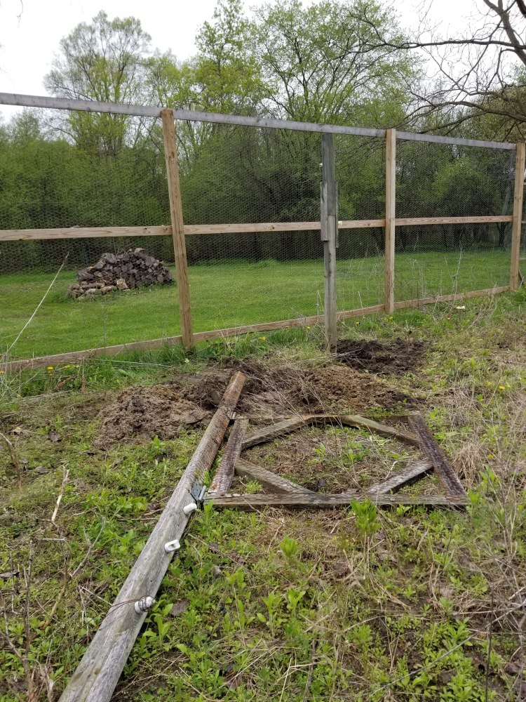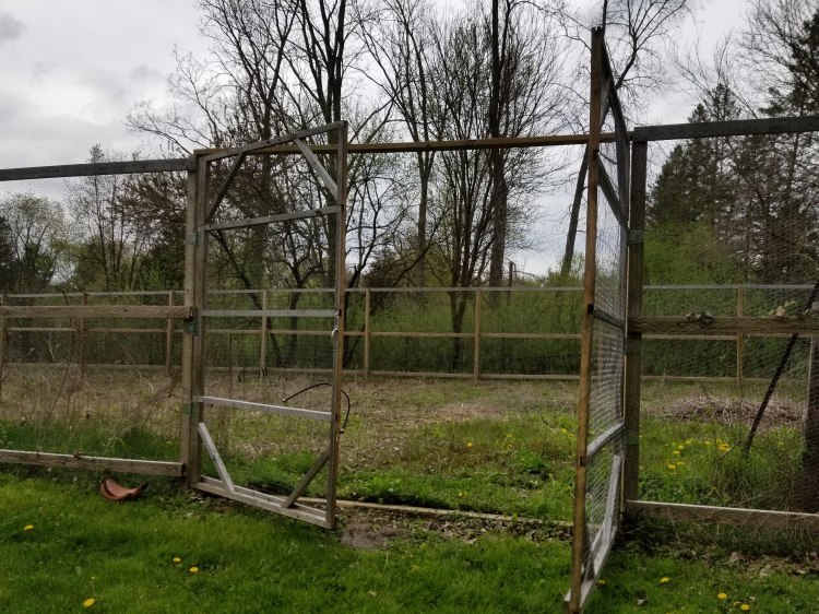 A little background on the project: In 2018 Last year, a new fence was built around the old fence, expanding the size of the garden and improving the security of the garden area. The old fence was removed on three sides, leaving the two gates and the chicken wire and electric wire which was attached at the tops in an attempt to keep the deer out.